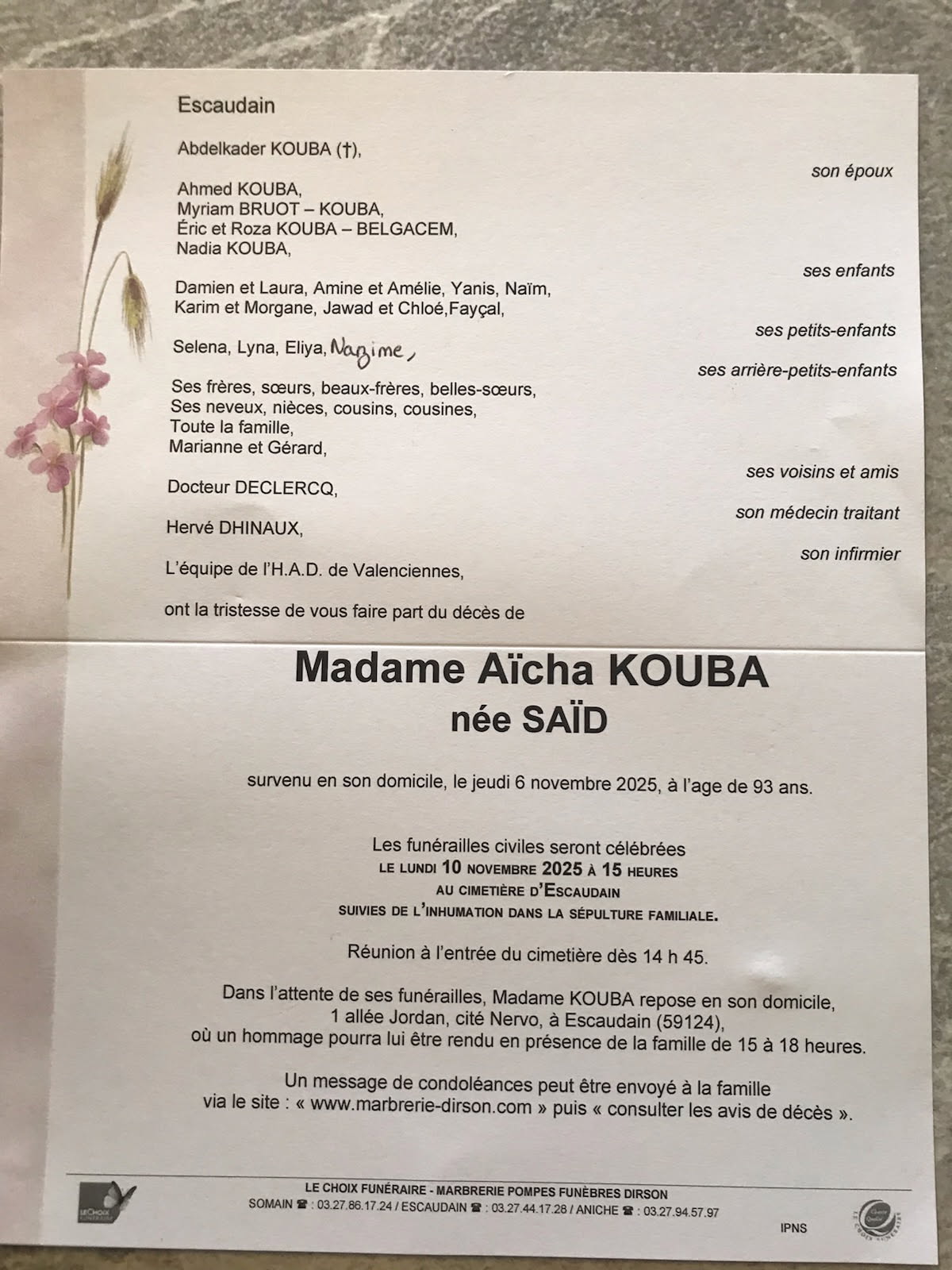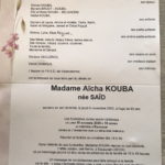 Nous avons appris le décès de Aïcha KOUBA