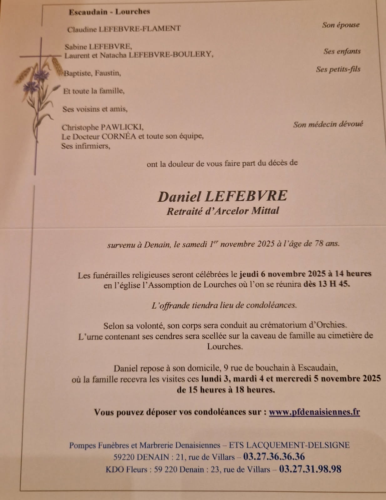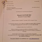 DECES DE DANIEL LEFEBVRE.