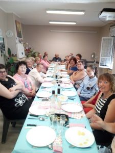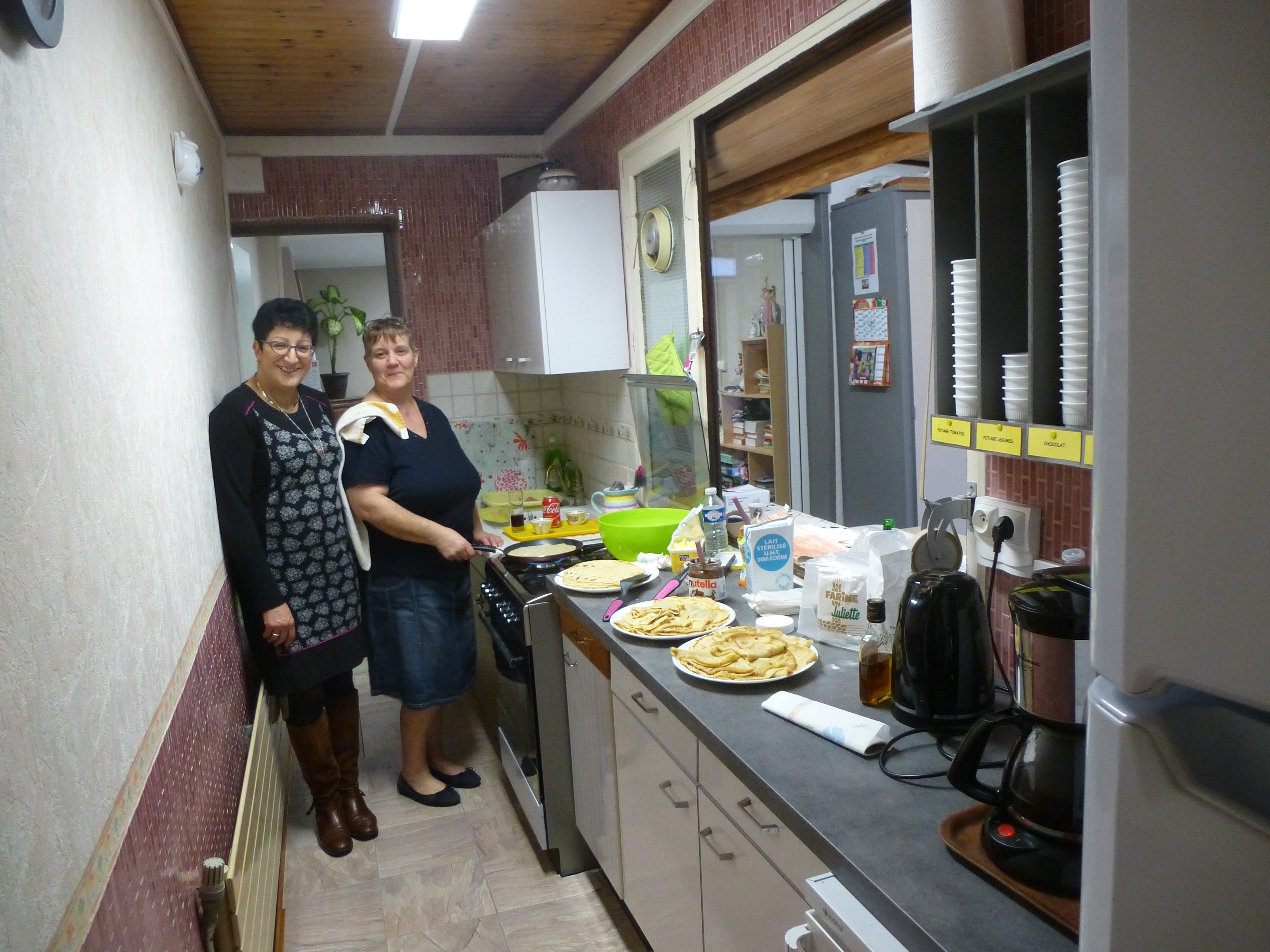 Salades, petits pois, tomates,etc……..tout est disponible pour les dames de l’atelier cuisine.