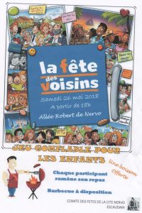 FÊTE DES VOISINS. Publié le 22 mai 2018 par citeNervo La fête des voisins 2018 se déroulera ce samedi 26 mai au niveau du local associatif,21 allée et cité Nervo. Venez nombreux, jeu gonflable, barbecues, sono vous sont proposés.